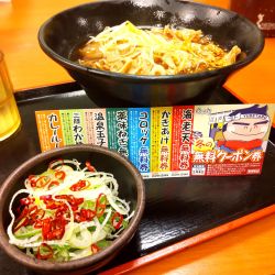 本日はコチラ「みやま山荘」へ伺い、信越食品オリジナルメニューの「豚丼セット」を。更には無料クーポンを利用して「かきあげ」を頂いて参りました。