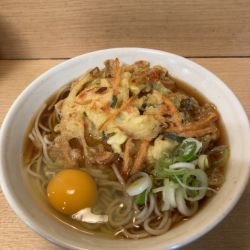 醤油の甘みにしっかりと出汁が絡み合い、かき揚げの衣がコクを与える。最後に卵の円やかさが加わり、立ち食い蕎麦の醍醐味が味わえる一杯。